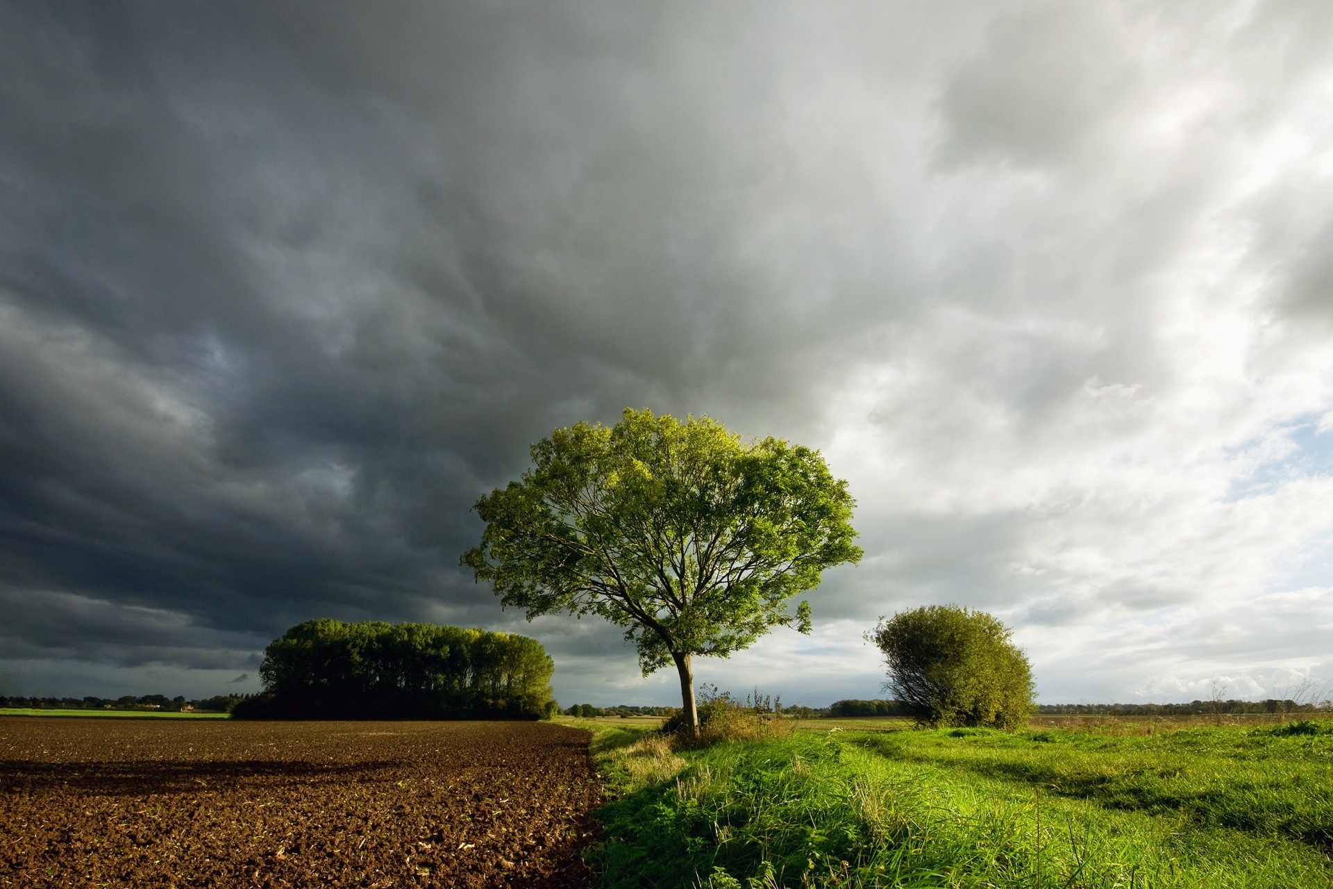 Cielo azul, sol cegador Campo verde iluminado por el sol abrasador