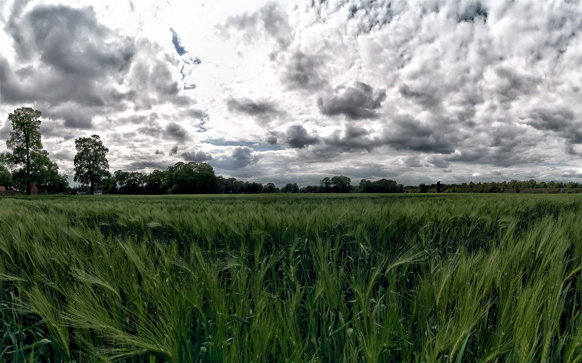 Pronto lloverá la gravedad de las nubes y el viento ondeando pastizales