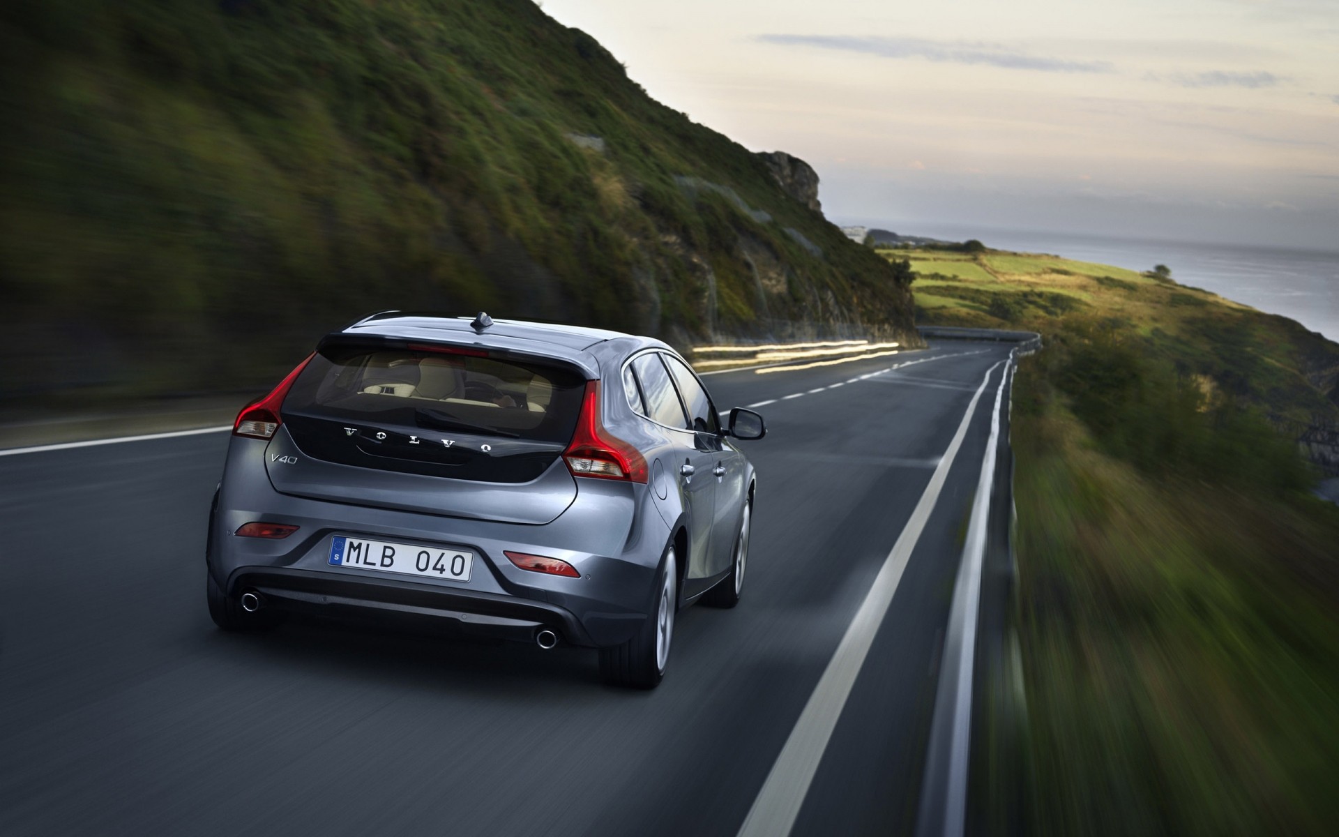 Un Volvo gris tranquilo y moderado rueda en serpentina