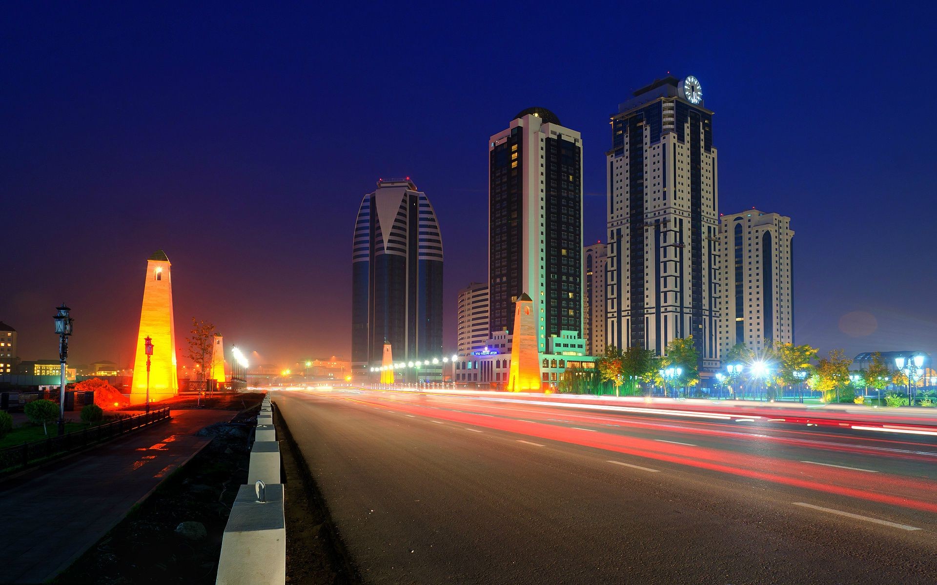 La arquitectura de las ciudades en Japón en el crepúsculo de la noche