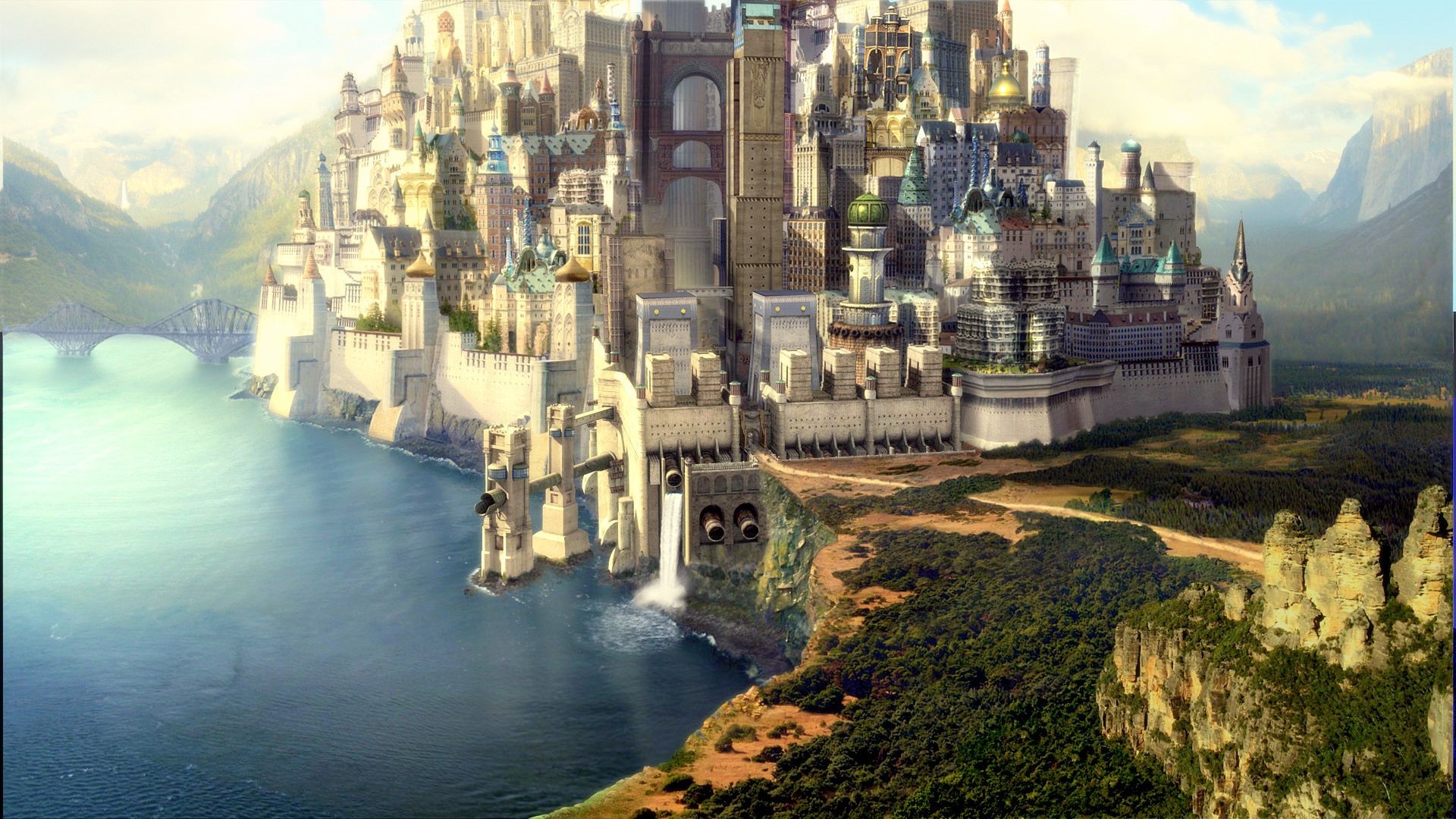 Una ciudad de cuento de hadas con una arquitectura eleganteUna ciudad de cuento de hadas con una arquitectura elegante