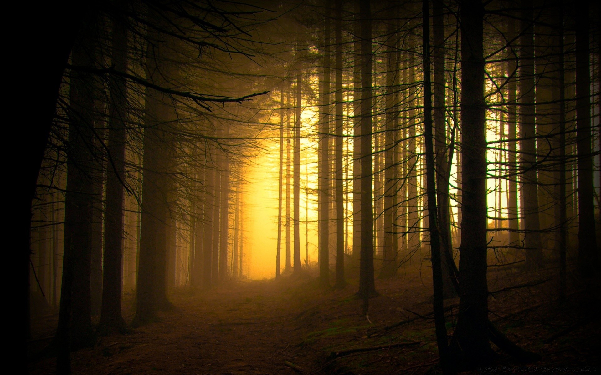 Bosque oscuro al atardecer