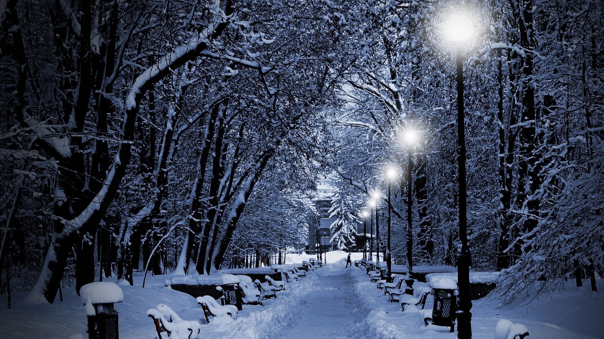 Árboles de nieve en una ciudad abandonada