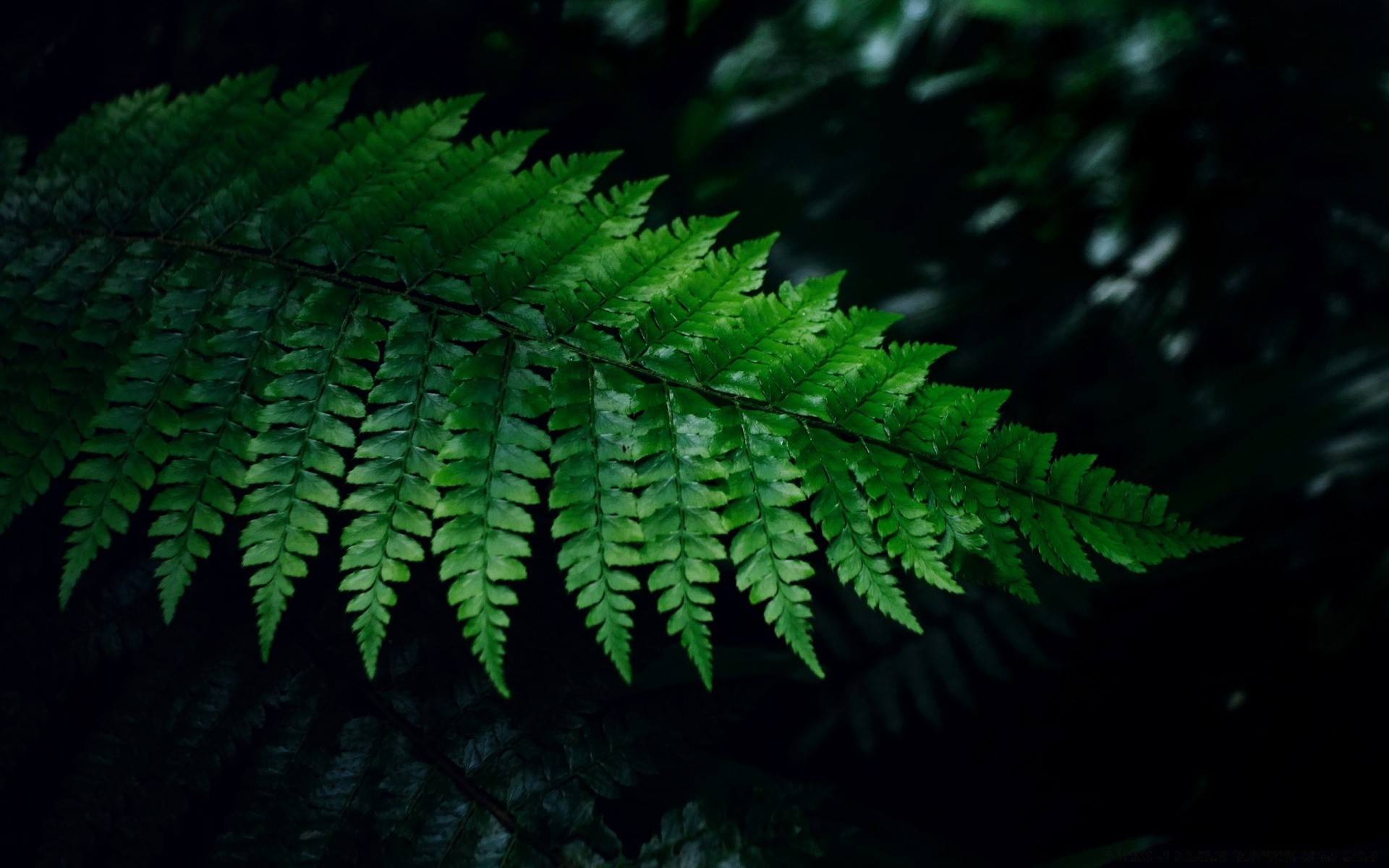 Hermosa hoja de helecho sobre un fondo oscuro