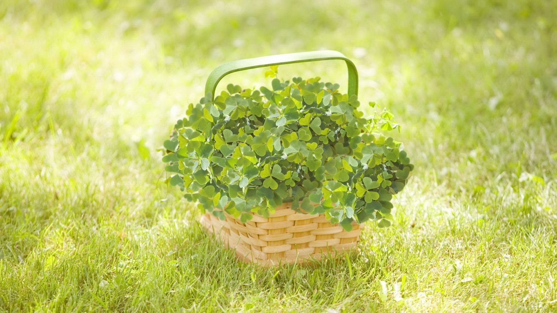 Cesta de mimbre con hierbas en la hierba. Hermoso paisaje rural