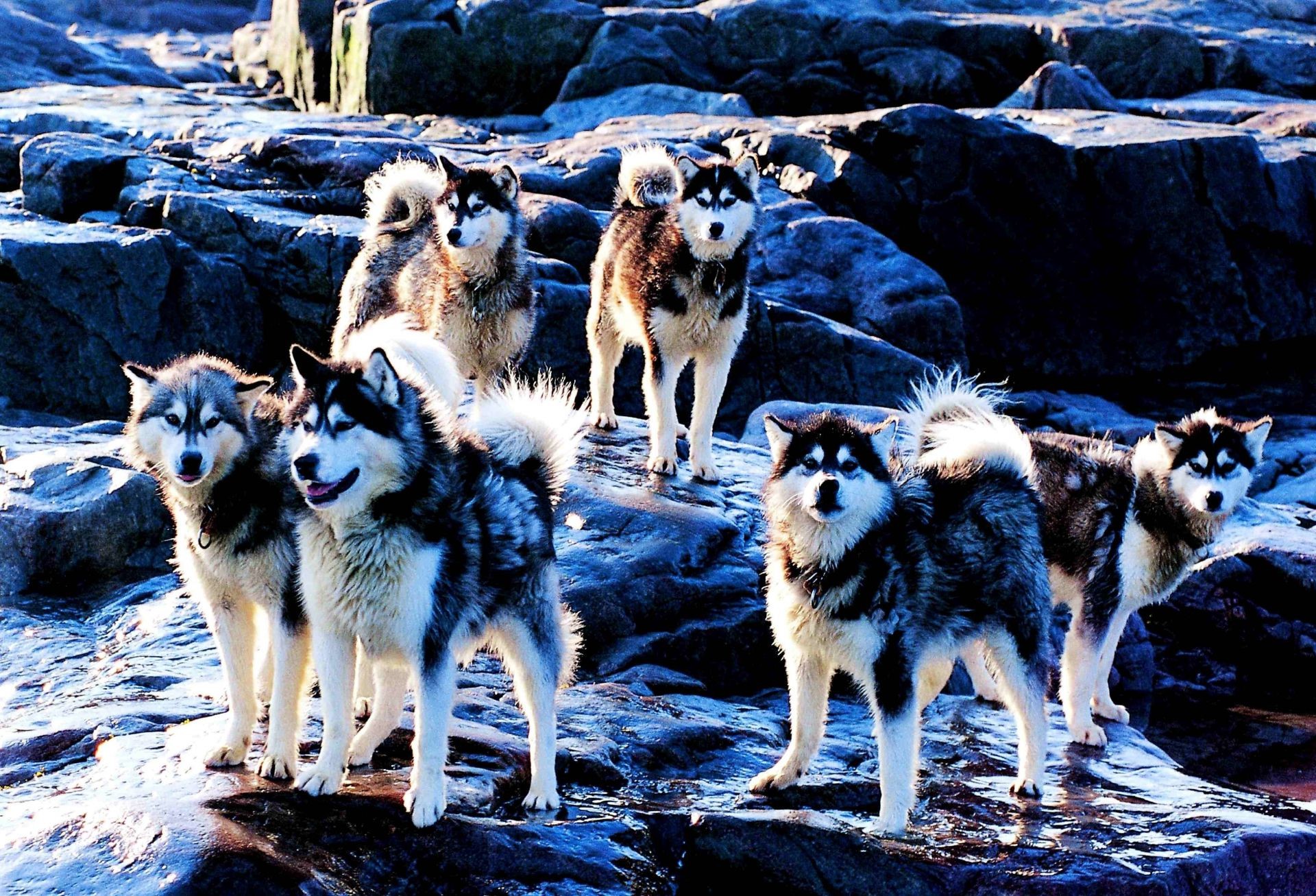Hermosos perros Husky esperan a su dueño