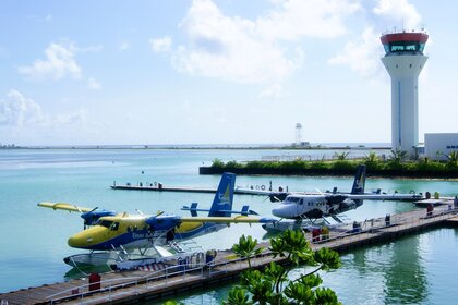 Avión en el agua. Viajes. Mar