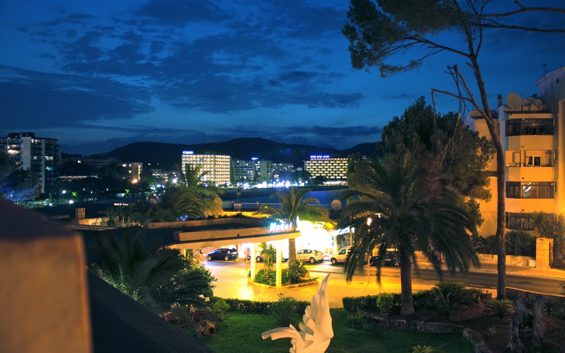 Casa de fantasía con ventanas iluminadas de pie junto al agua