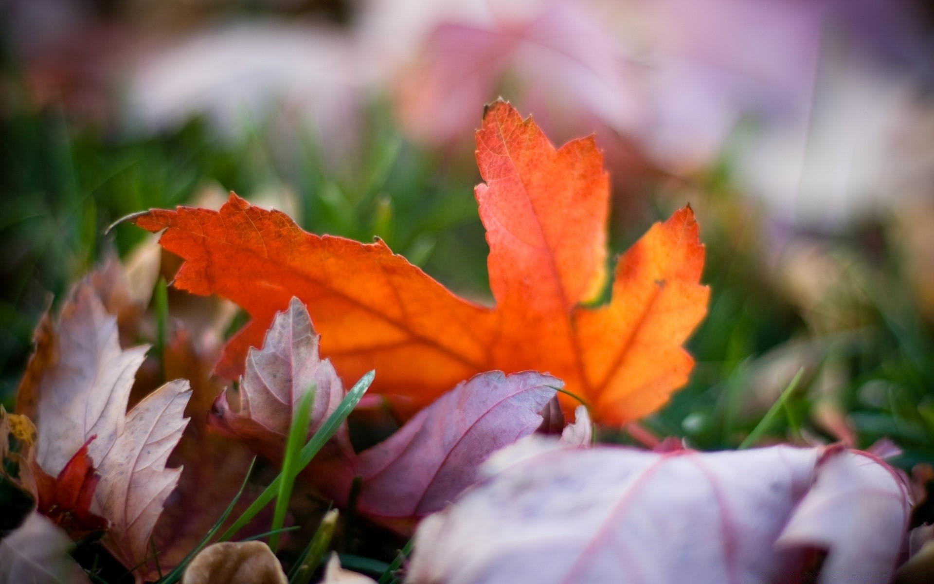 Bosque de otoño con hojas rojas en los árboles y el Suelo