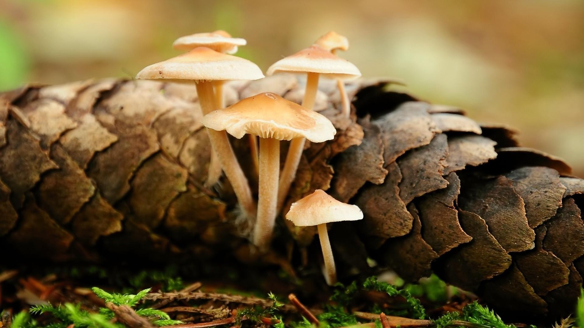 Pequeños hongos en el musgo