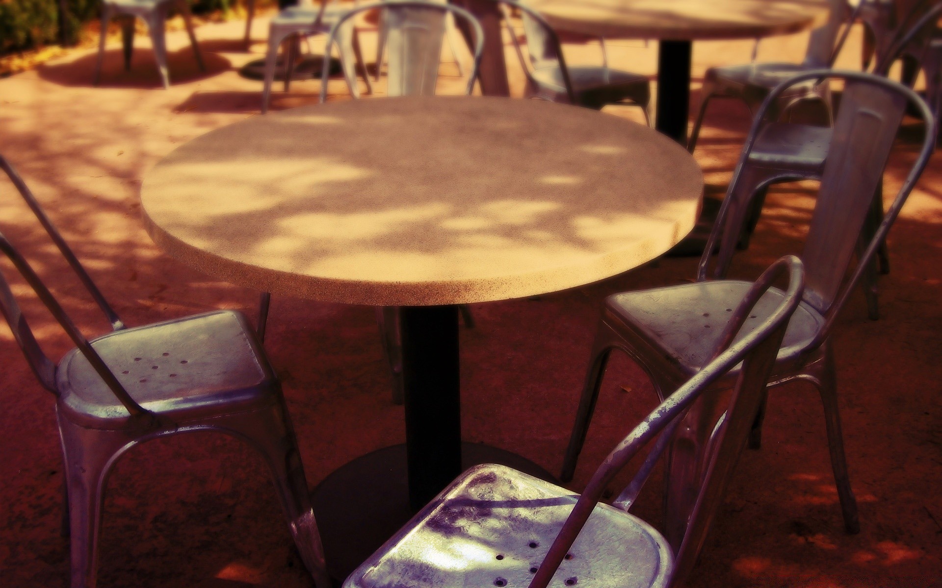Ciudad. Café, mesa y sillas