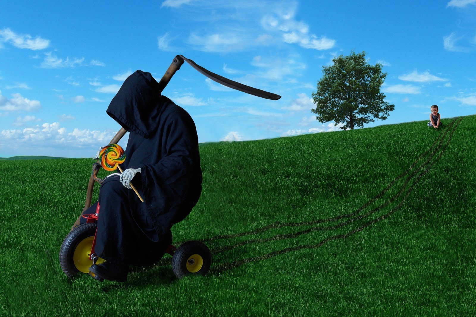 Paisaje de humor negro en la hierba y al aire libre