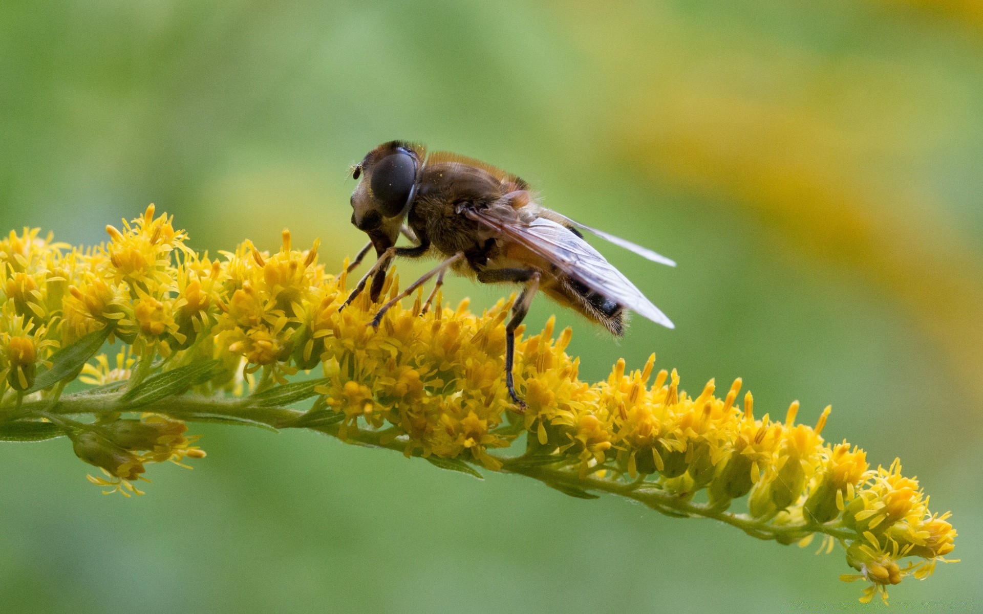 La abeja en una hoja amarilla en la naturaleza a menudo se veLa abeja en una hoja amarilla en la naturaleza a menudo se ve
