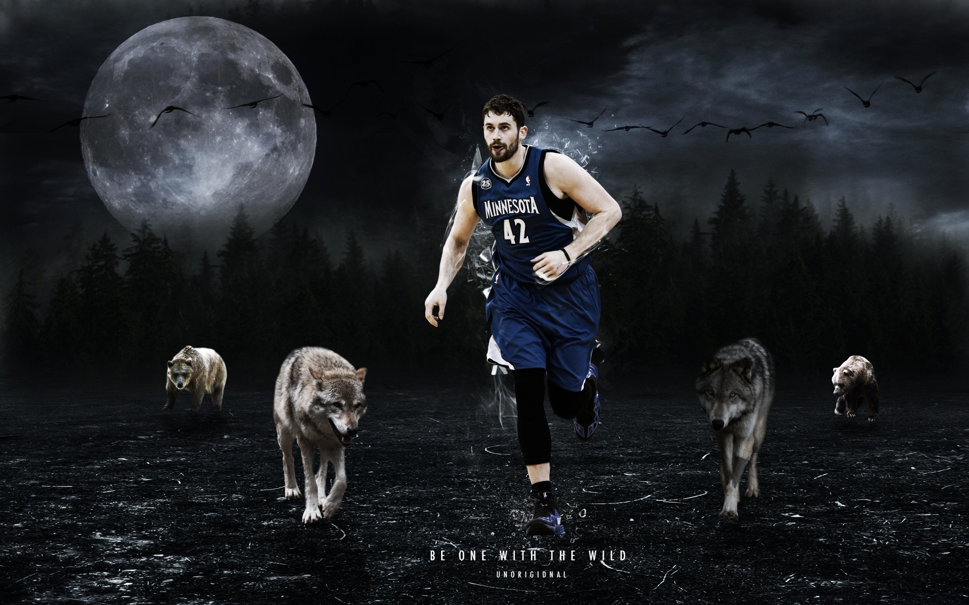 Juego de baloncesto entre lobos en el aire