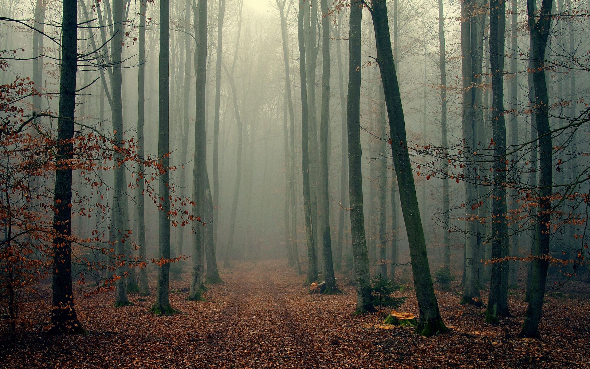 Foggy madera follaje árboles niebla bosque otoño ramas