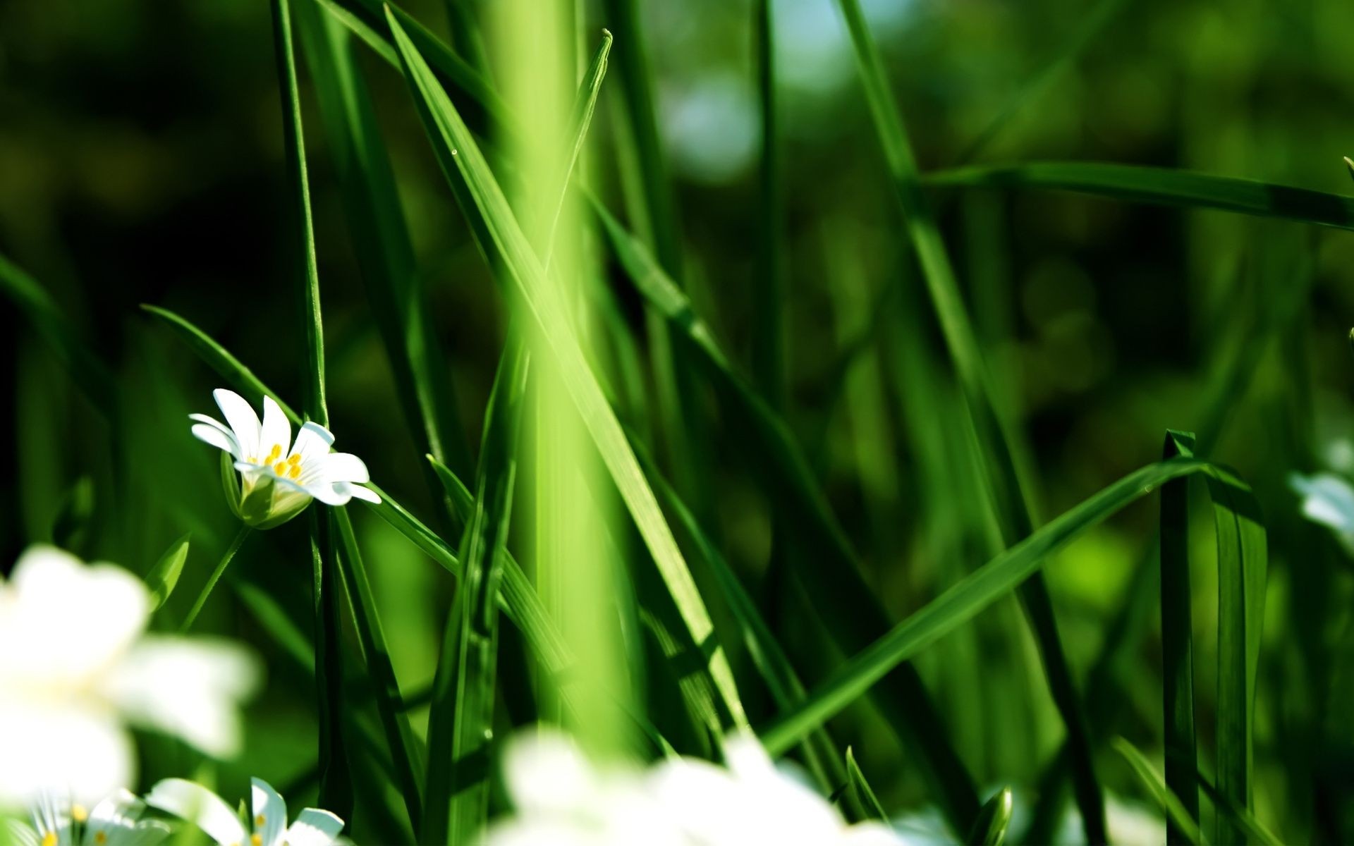 Dientes de León volando de él pelusa entre la hierba verde contra el cielo con nubes blancas