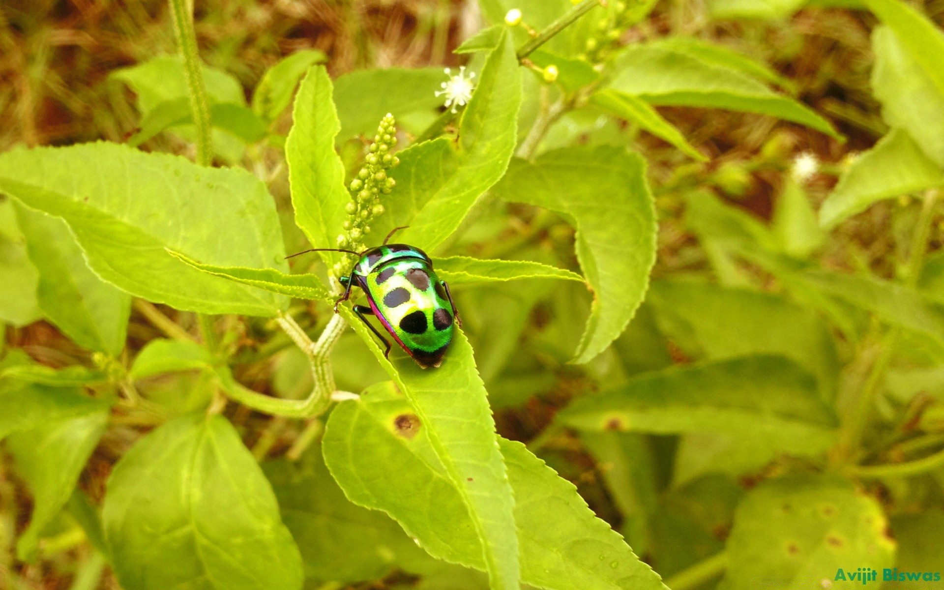Escarabajo verde en la hierba