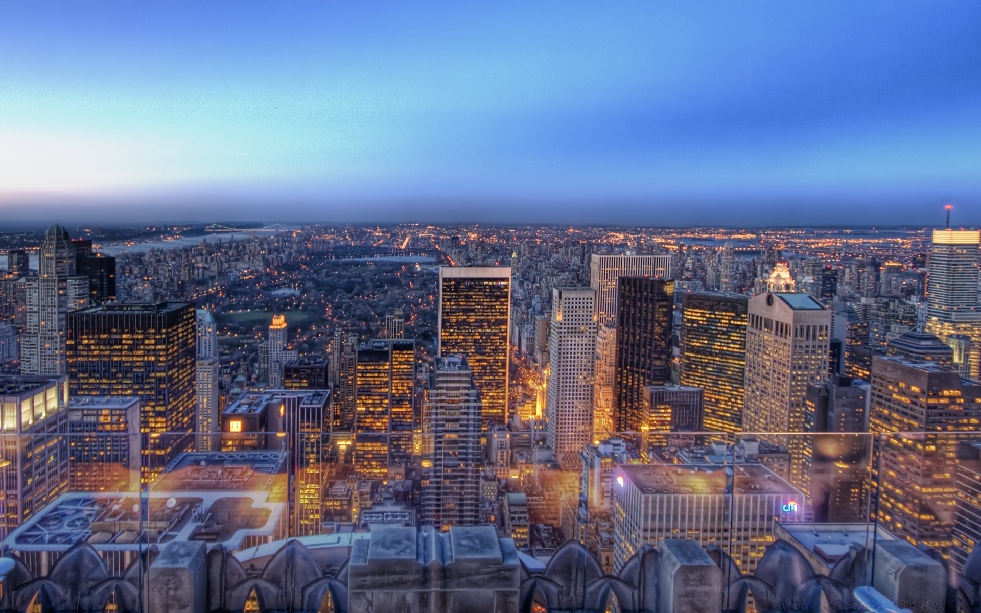 Hermoso panorama de la ciudad en las luces brillantes por la noche