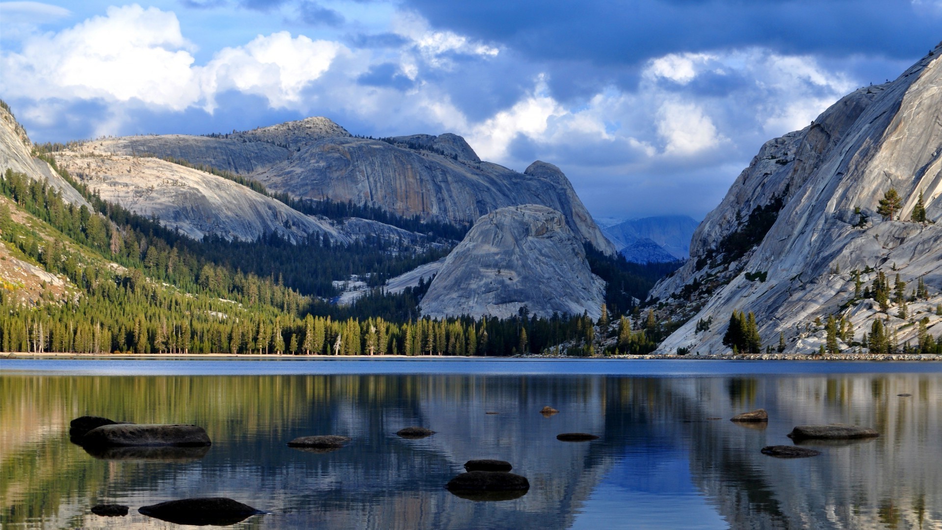 El cielo nocturno se refleja en el lago con los rayos del sol