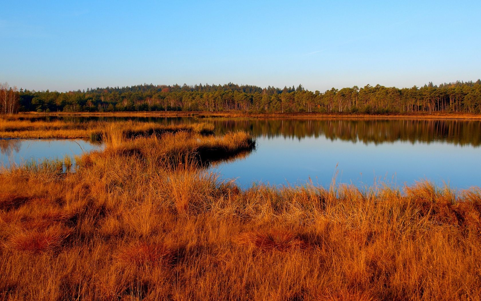 Detrás del lago hay un bosque y detrás del bosque hay una montaña