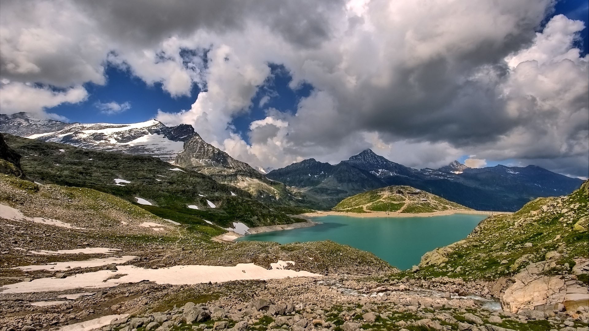 El cielo nocturno se refleja en el lago con los rayos del sol