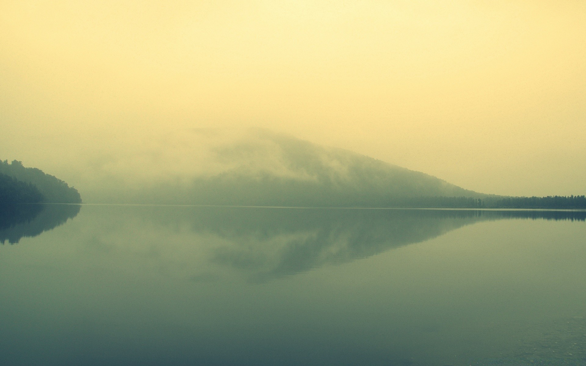 Niebla que envuelve la montaña y el lago