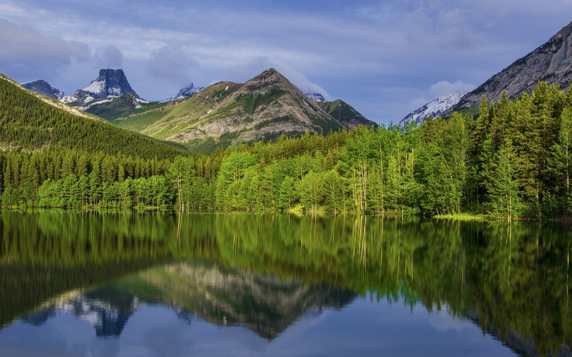 La puesta de sol ilumina la superficie del lago, la costa se refleja en el agua oscuraLa puesta de sol ilumina la superficie del lago, la costa se refleja en el agua oscura