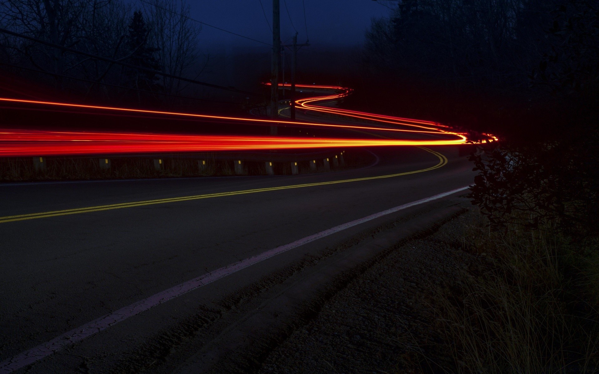 Foto de la carretera nocturna en el fondo del cielo nocturno
