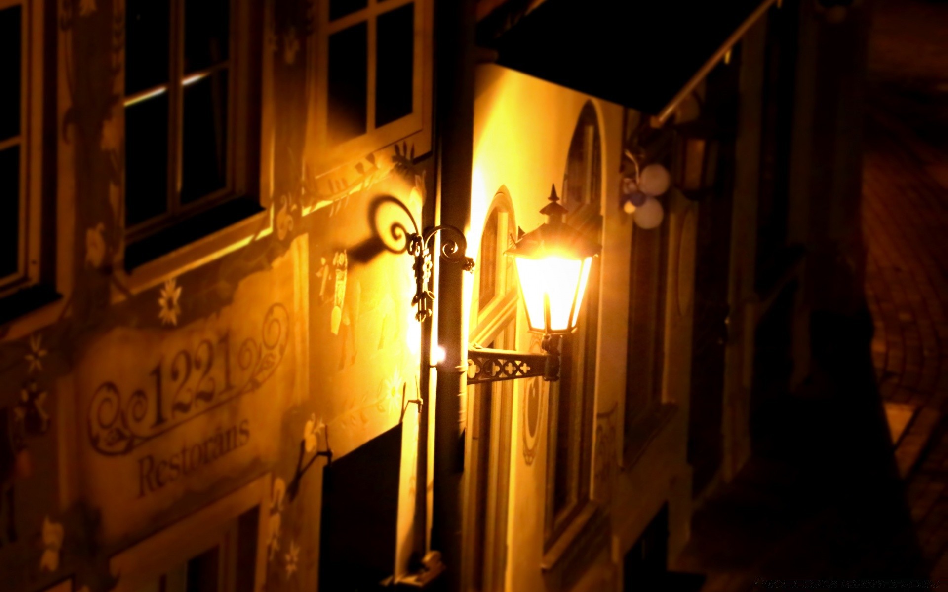 Linterna y siluetas de árboles contra el cielo al atardecer