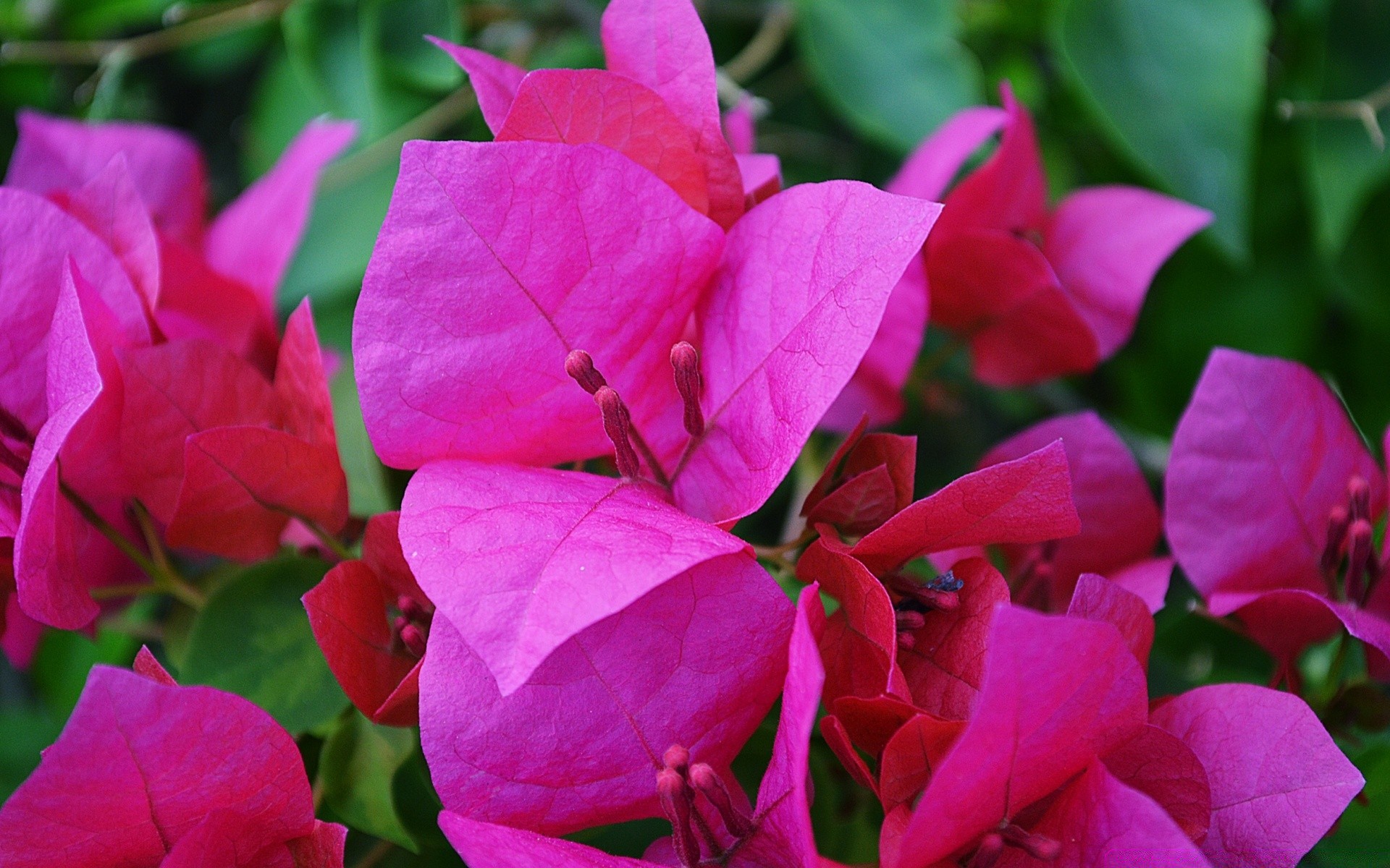 Flores rosadas sobre un fondo verde de hojas