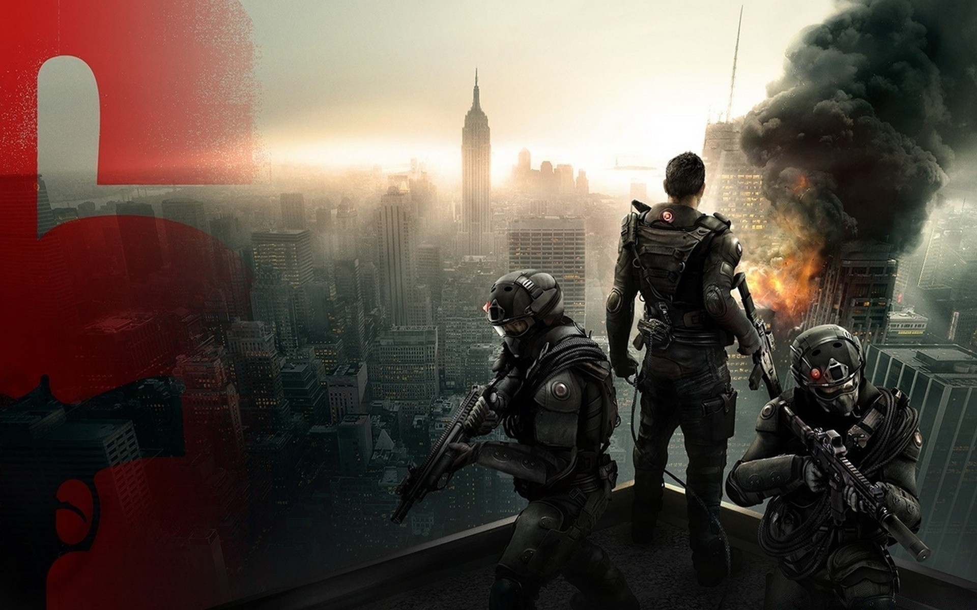 Tres militares en la ciudad en llamas
