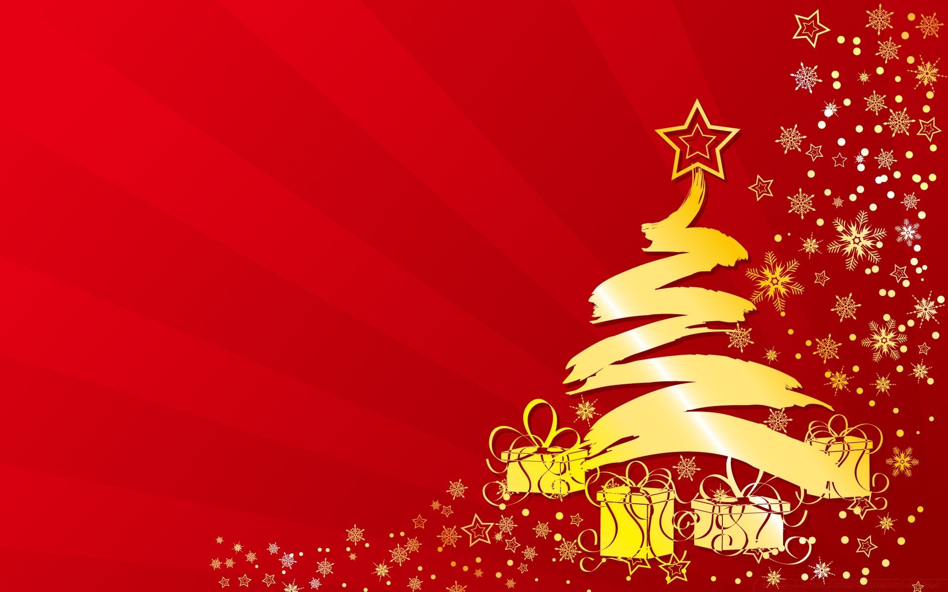 Árbol de Navidad de oro con regalos sobre fondo rojo
