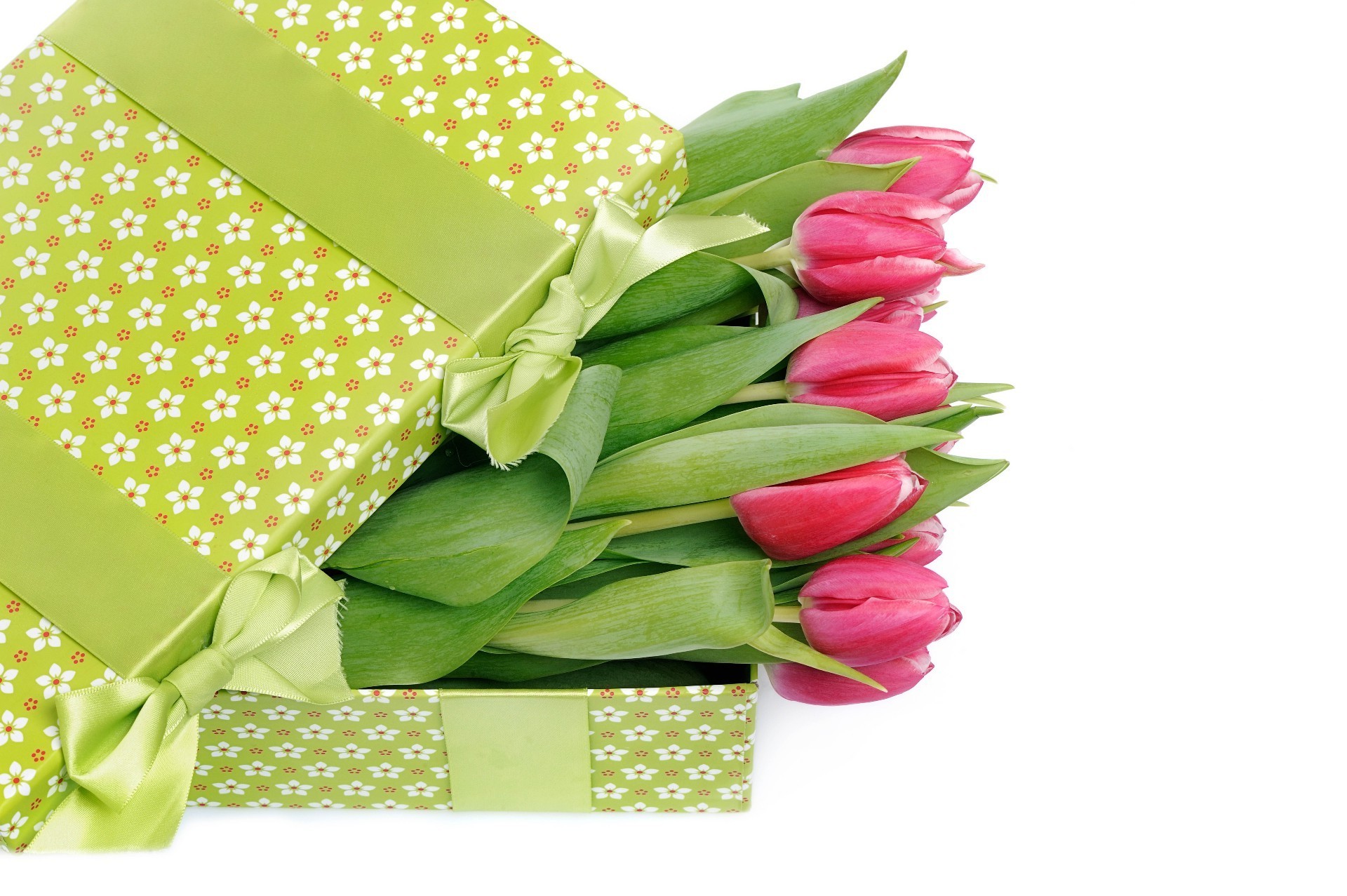 Tulipanes carmesí en Caja verde