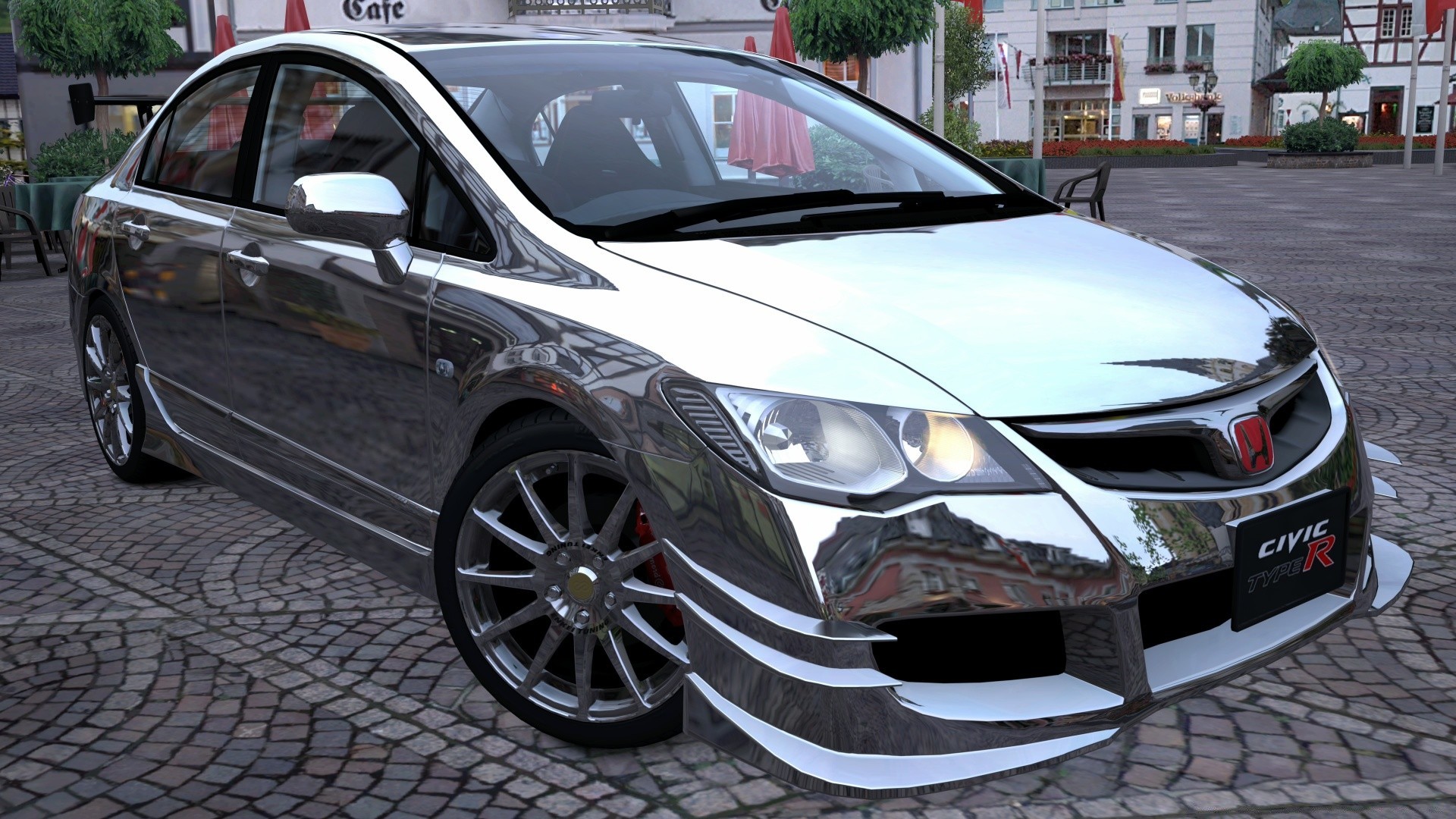 Deportivo brillante coche en la calle cerca de un pequeño edificio