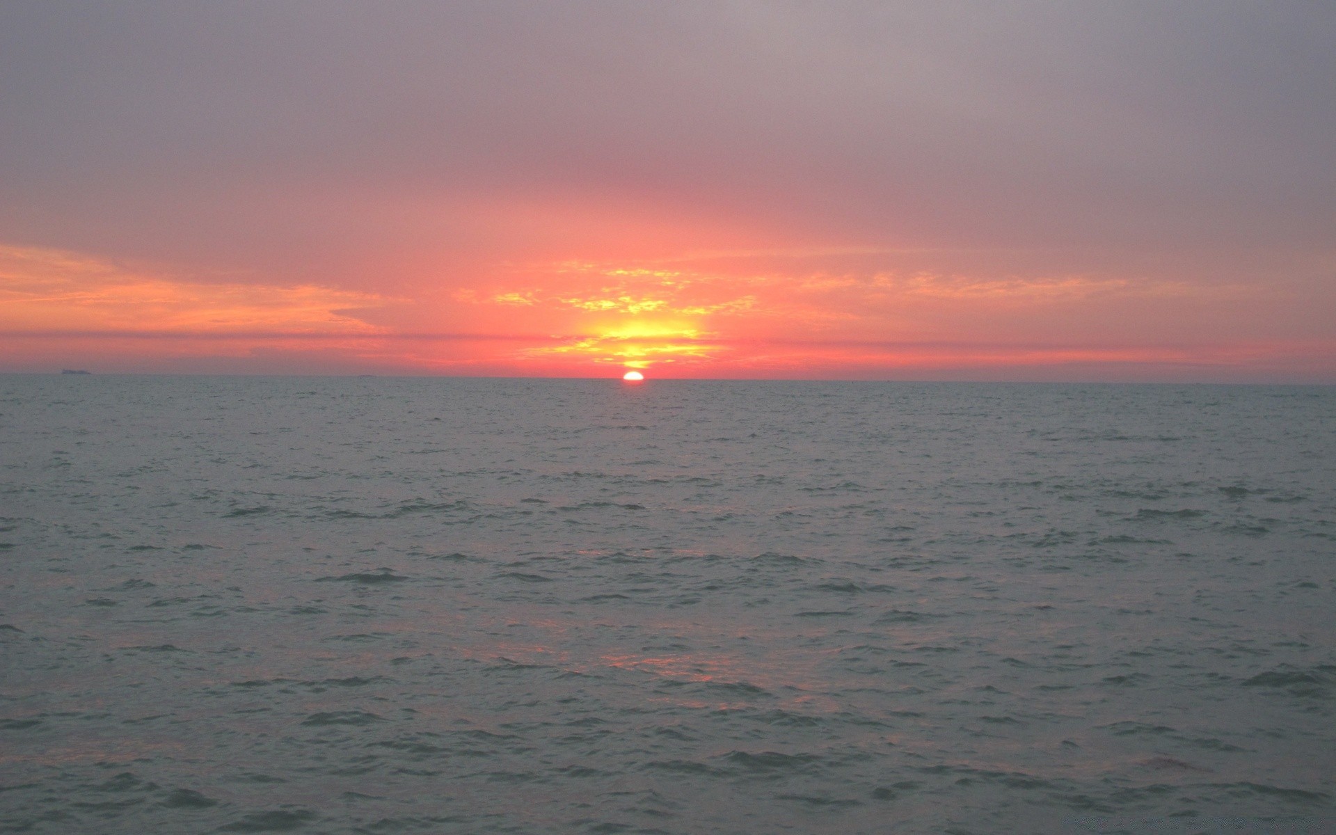 En ambas orillas del río azul iglesias y árboles verdes contra el cielo azul