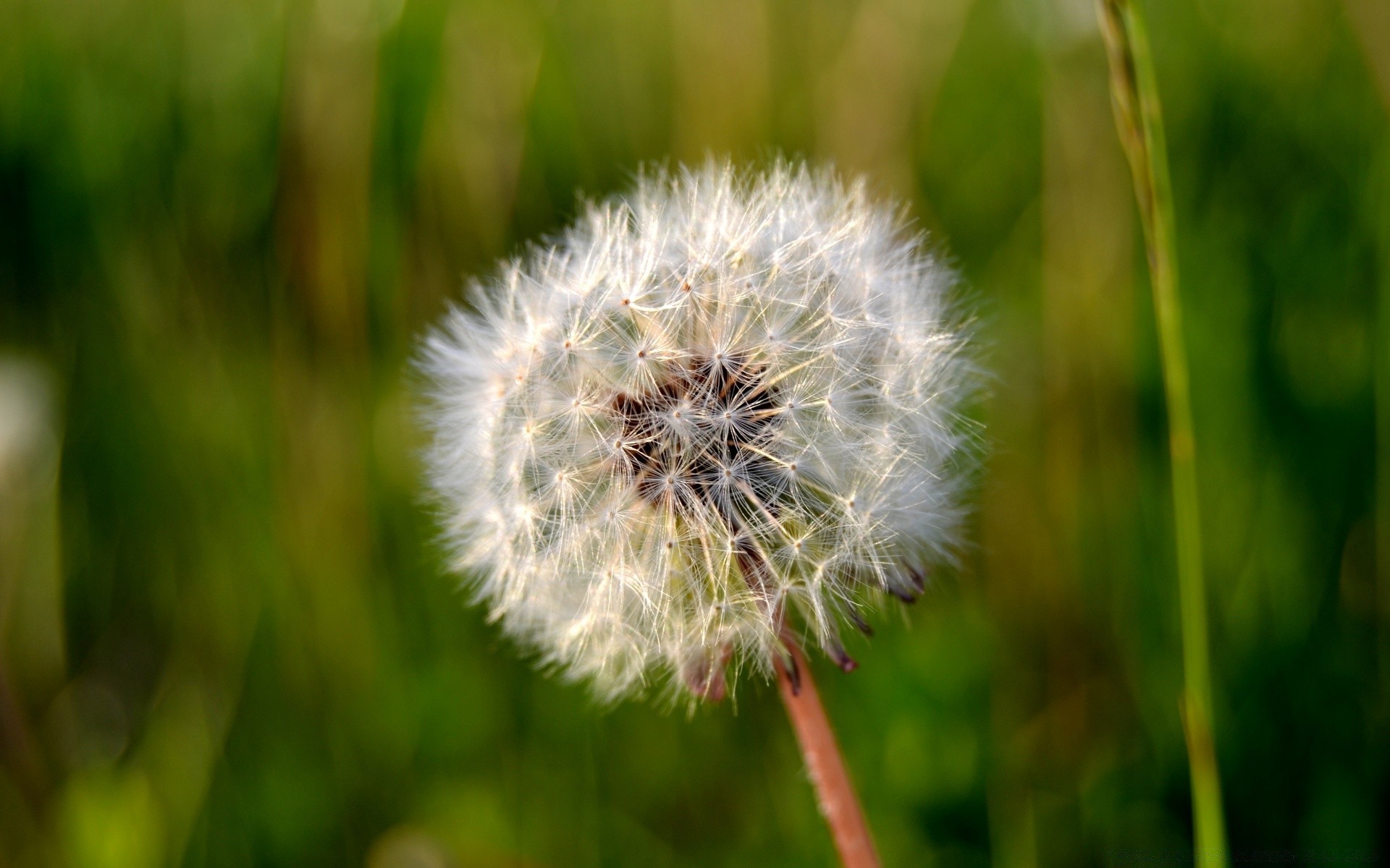 Macro de la hoja de hierba en el campo sobre un fondo borroso