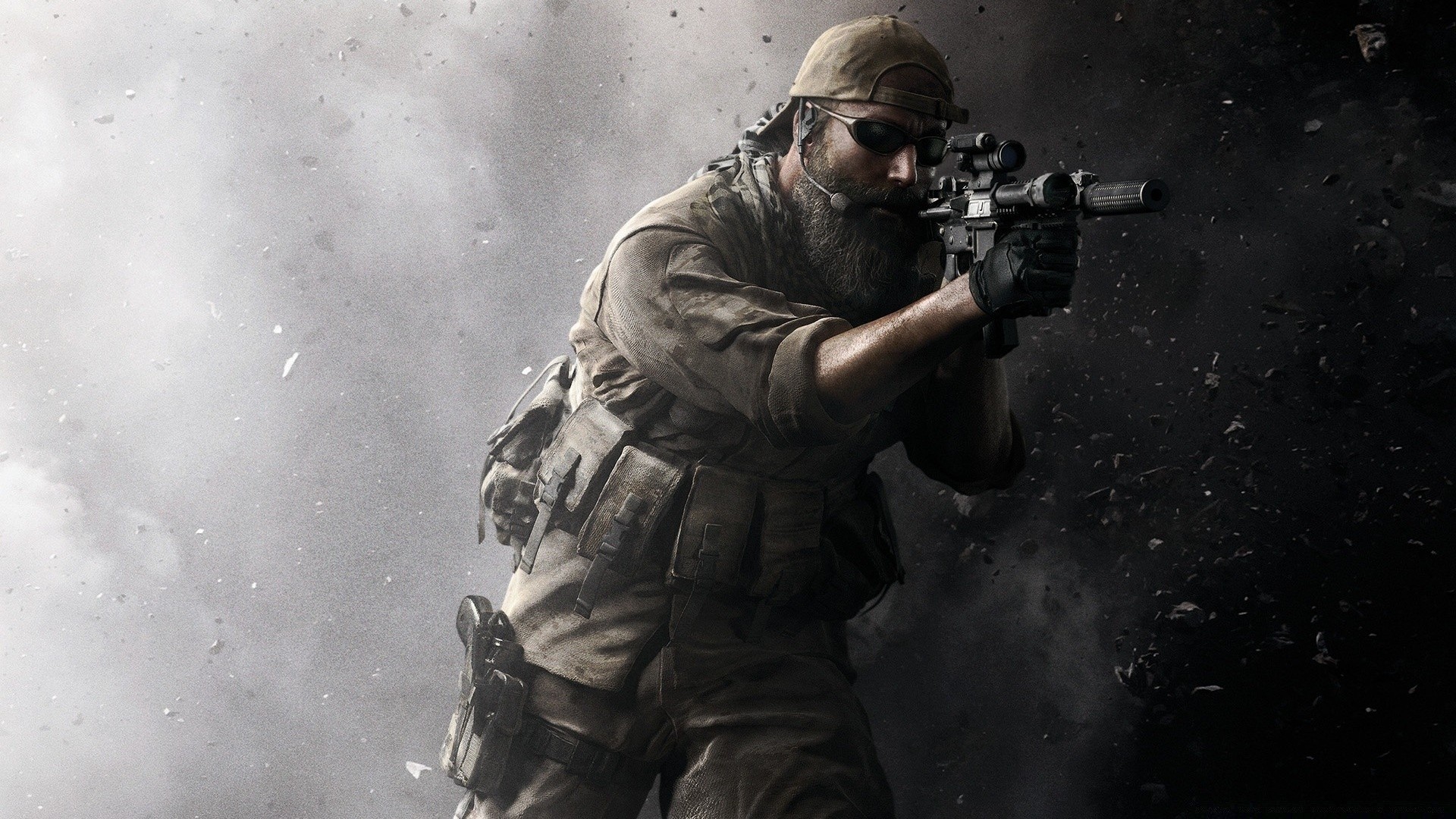 El héroe de la película con una pistola en la mano en el fondo de la ciudad moderna