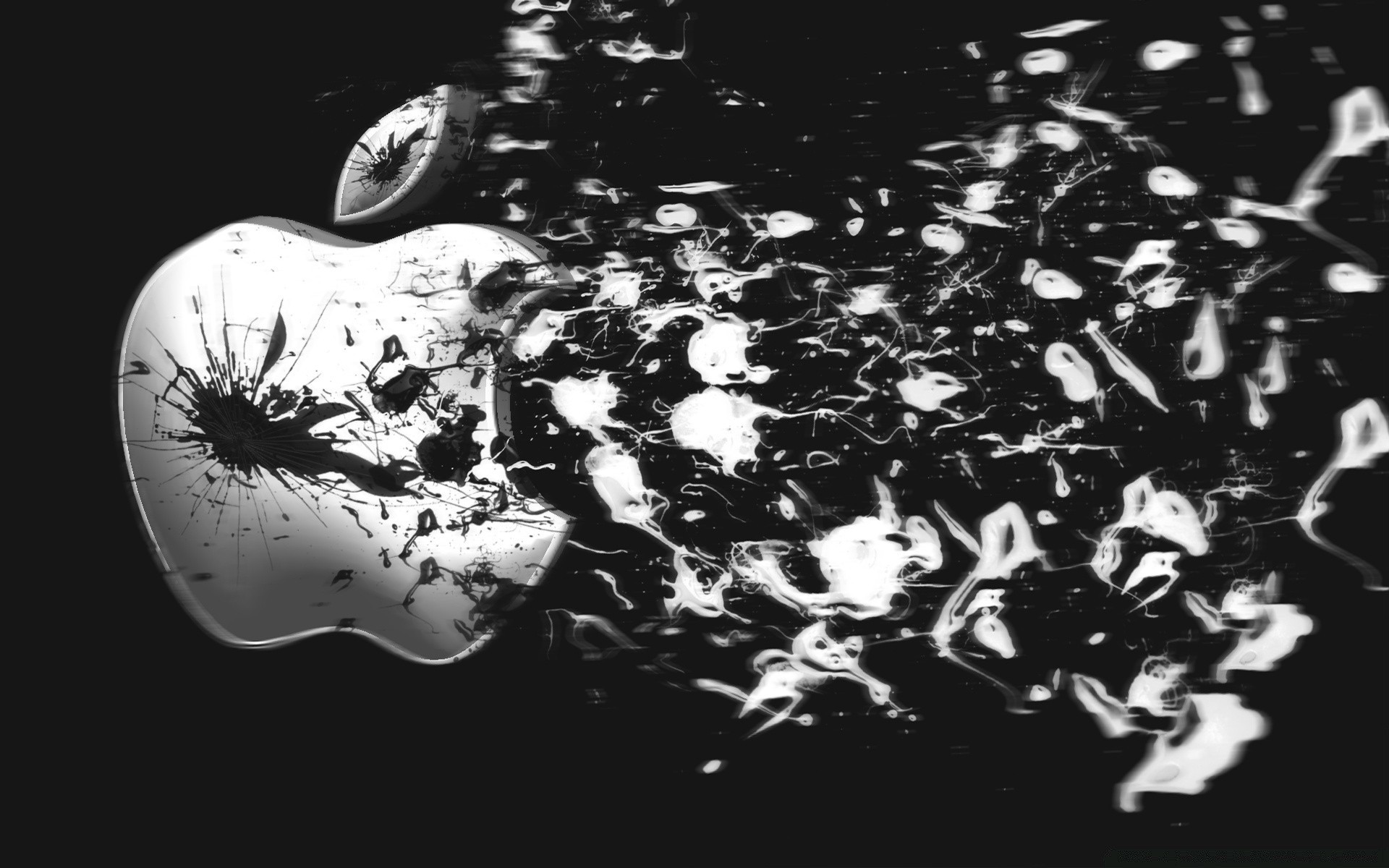 Imagen en blanco y negro de un signo de apple destrozadoImagen en blanco y negro de un signo de Apple destrozado