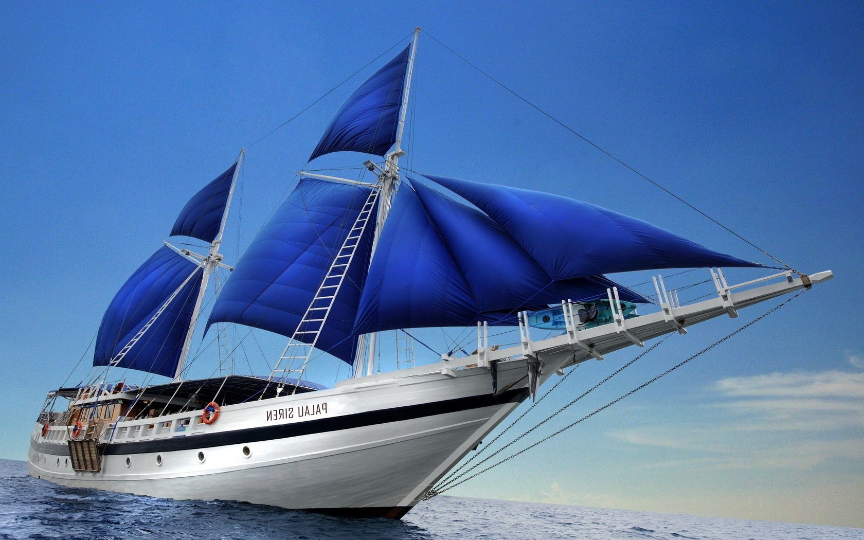 Hermoso velero navegando por el mar