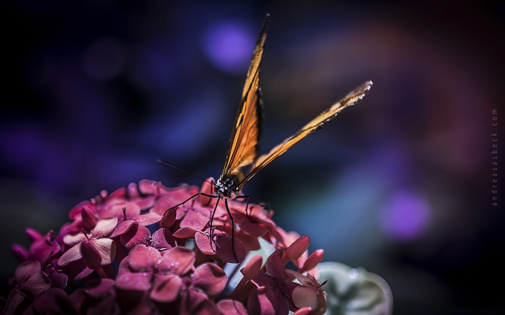 Mariposa en la flor con fondo borroso
