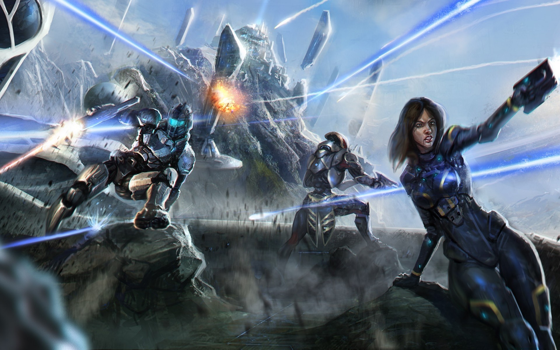 Personaje del juego Mass Effect en el fondo de la Luna