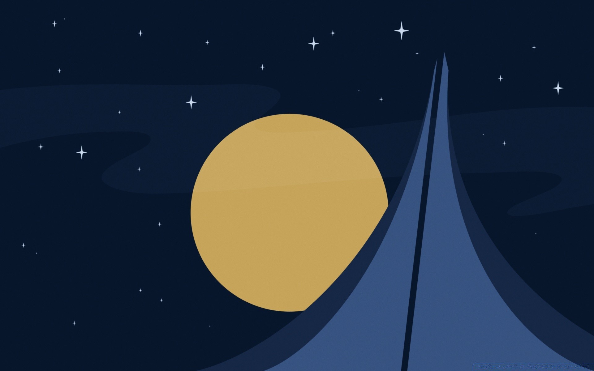 Paisaje estilizado castillo medieval monasterio en el fondo del cielo nocturno y la Luna