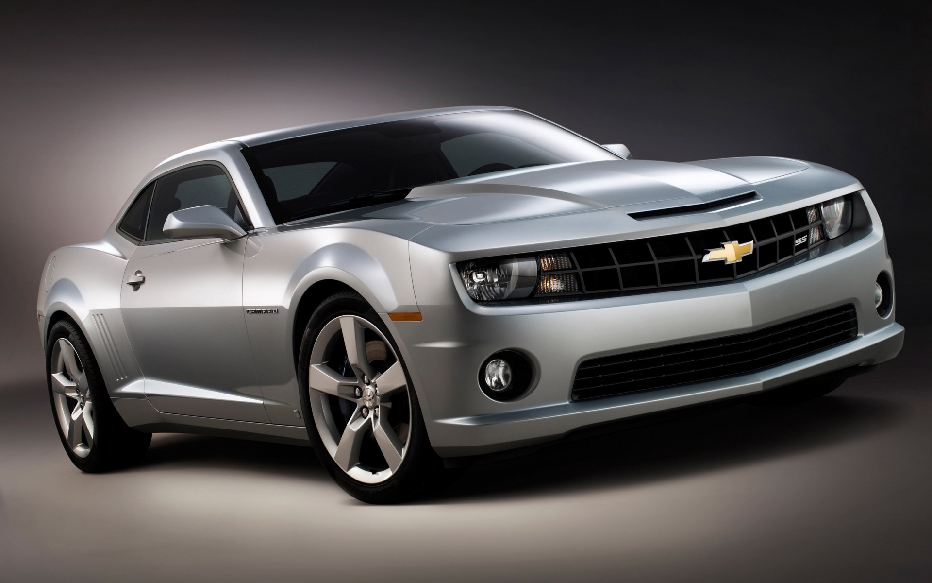 Un Chevrolet gris se encuentra sobre un fondo gris