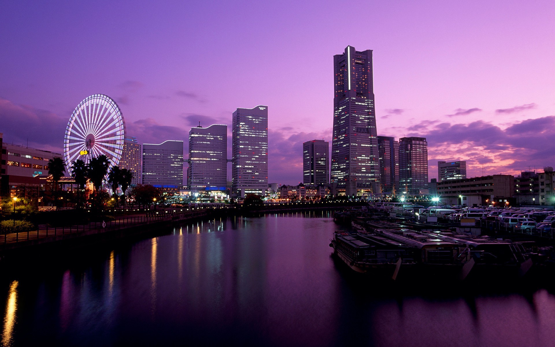 Puerto nocturno en australia dentro de los límites de la ciudadPuerto nocturno en Australia dentro de los límites de la ciudad