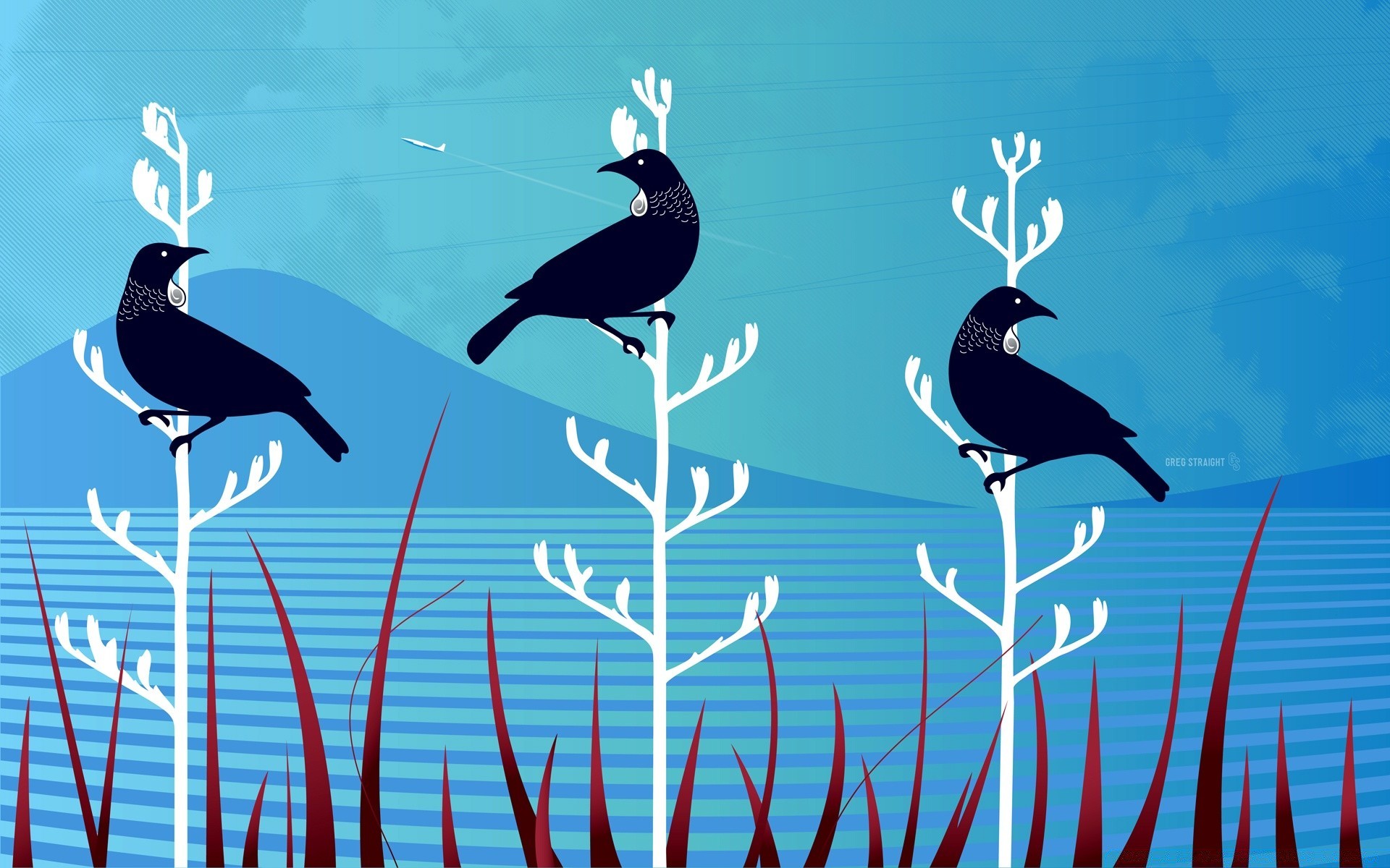 Hermosas aves pintadas que se sientan en las ramas