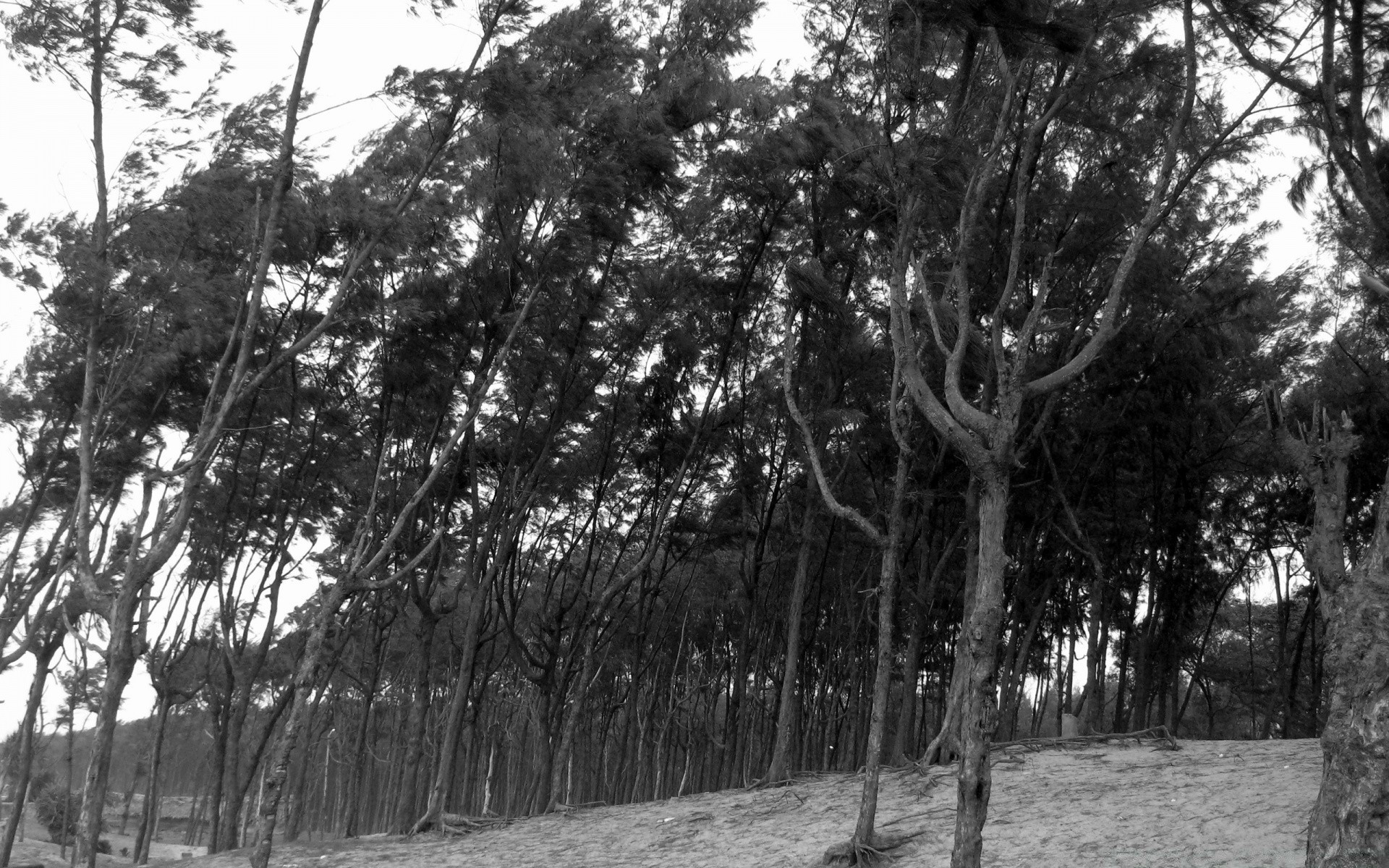 Foto en blanco y negro de un grupo de árboles