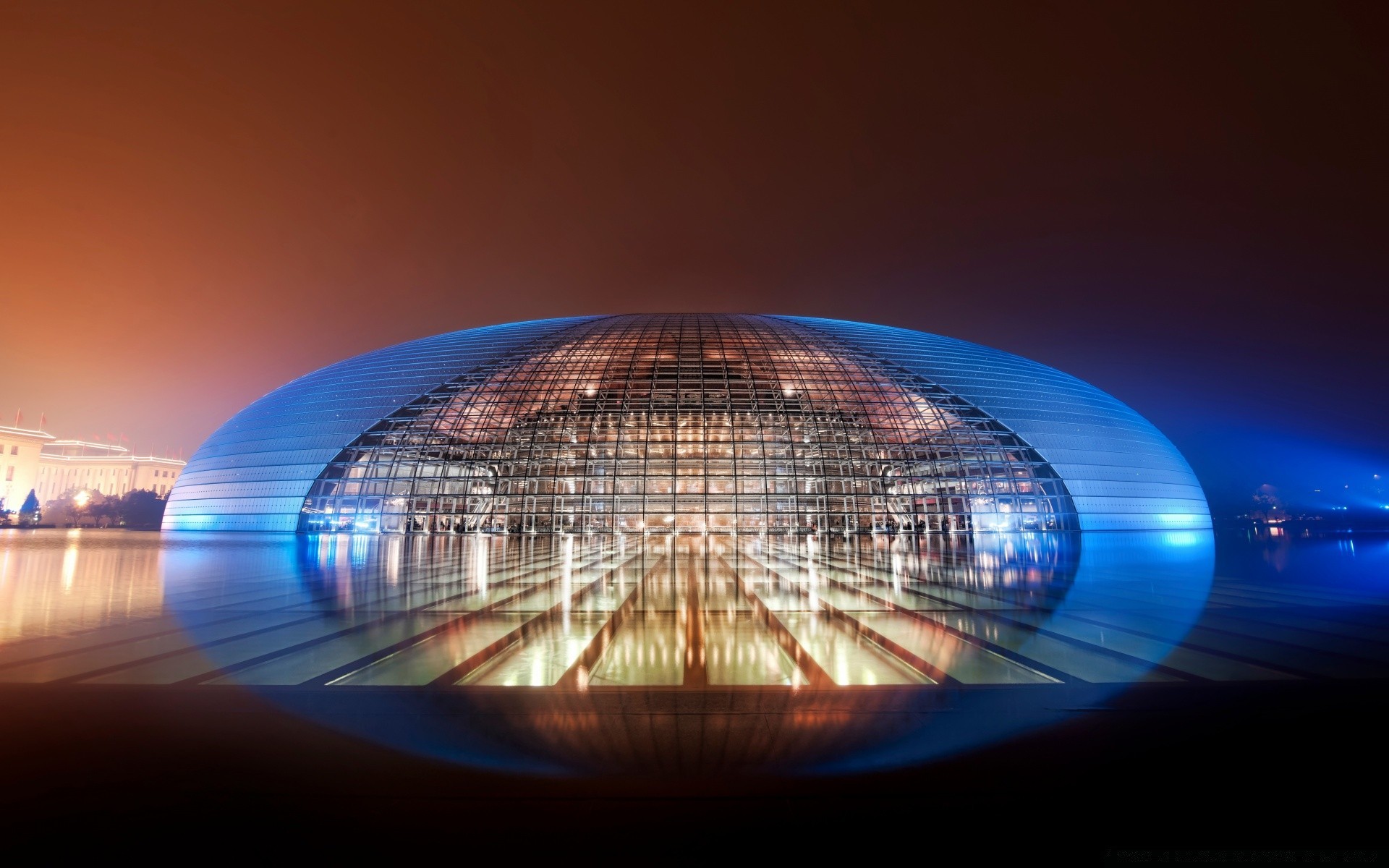 Impresionante edificio moderno con iluminación nocturna
