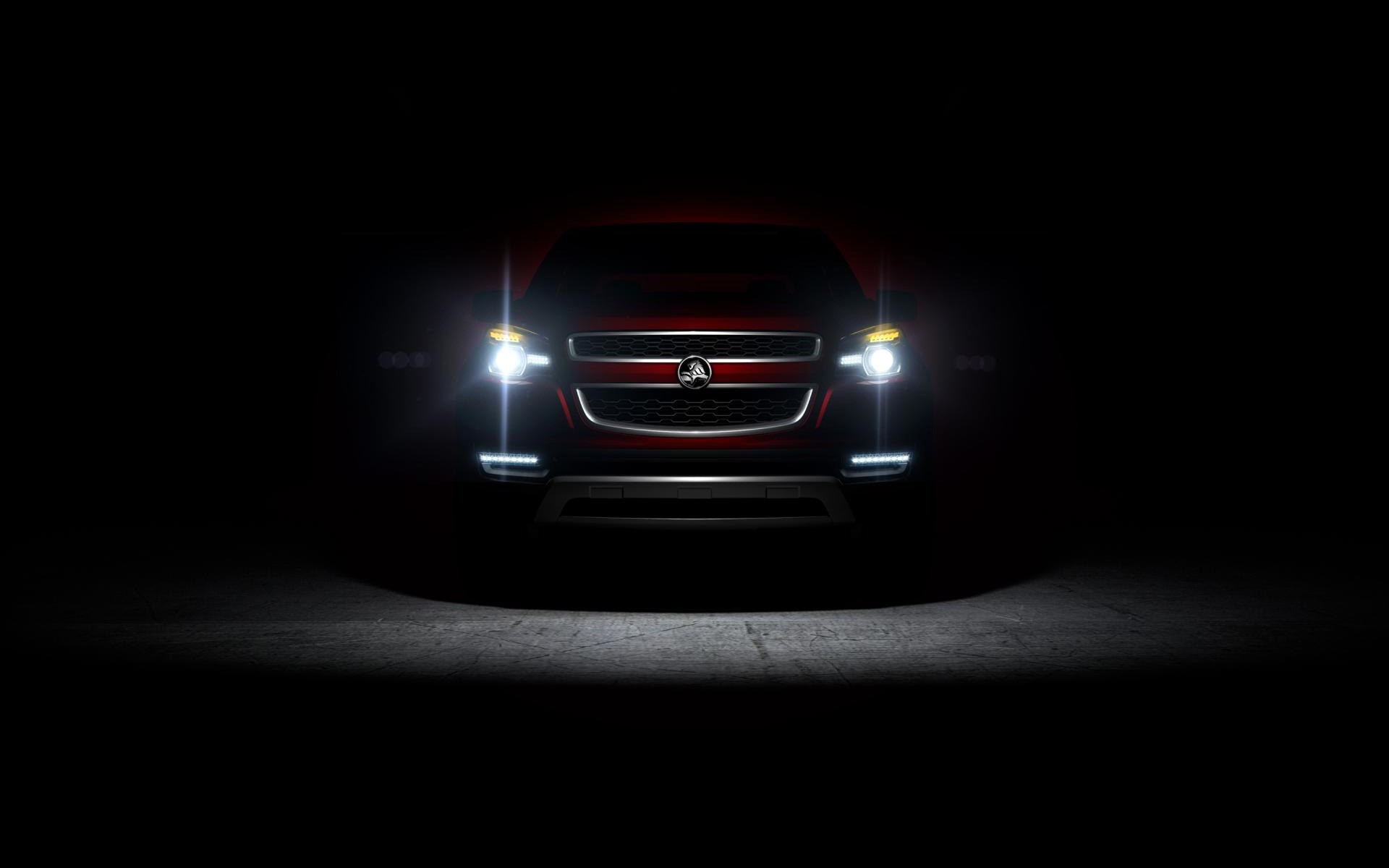 El coche extranjero rojo se encuentra en la oscuridad con los faros encendidos