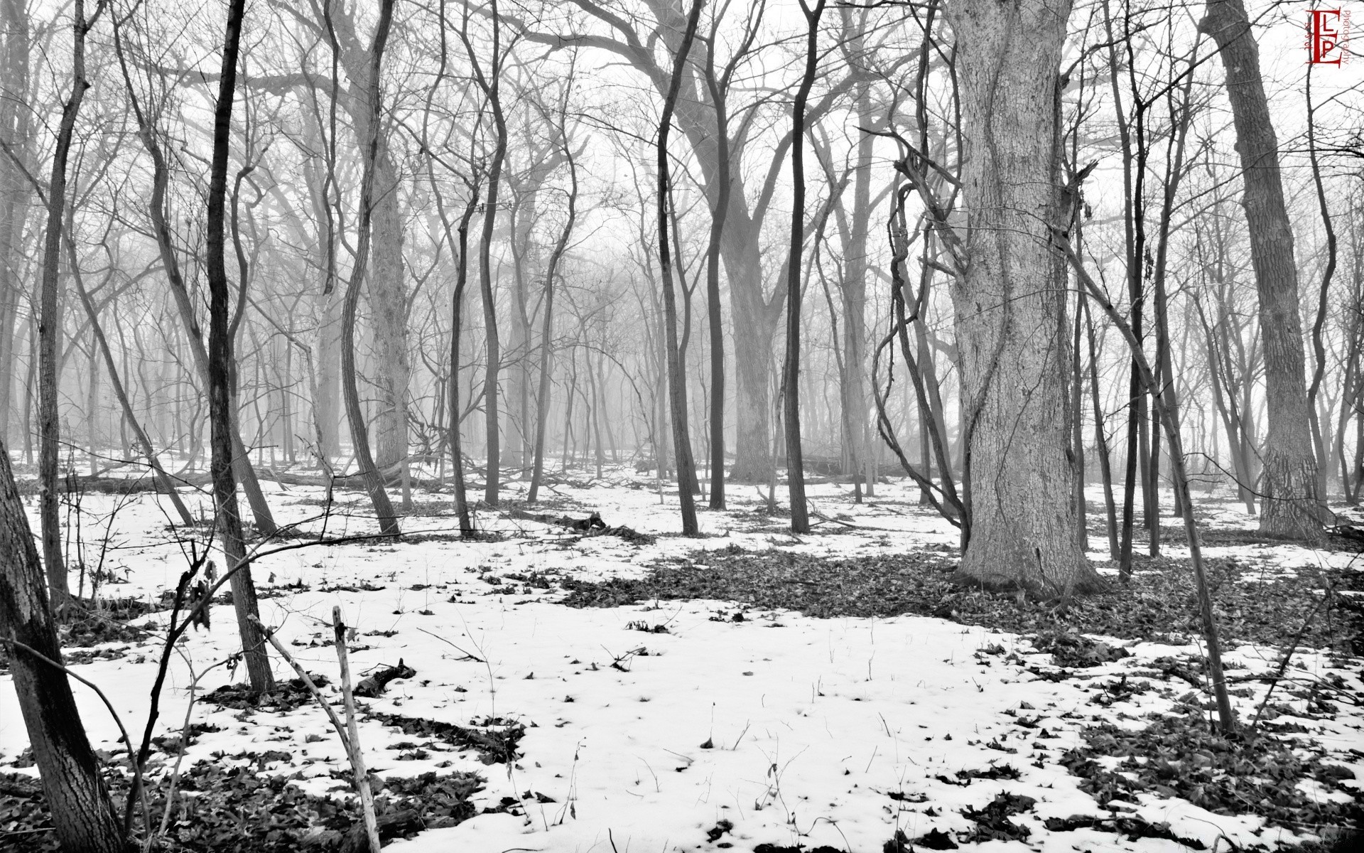 Bosque de invierno en gris monocromo