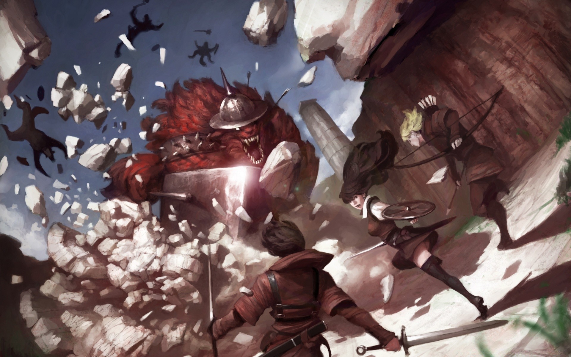 Ilustración de una caricatura con un monstruo marrón y un niñoIlustración de una caricatura con un monstruo marrón y un niño